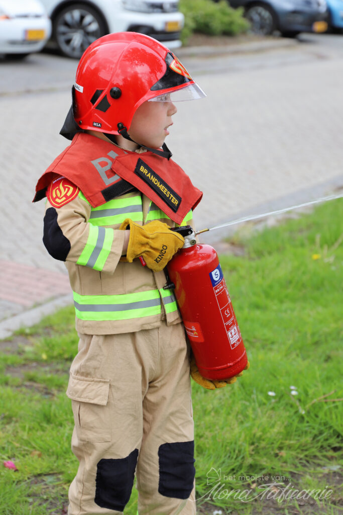 Op een feestje mogen de kinderen zich verkleden als brandweermannen en vrouwen.